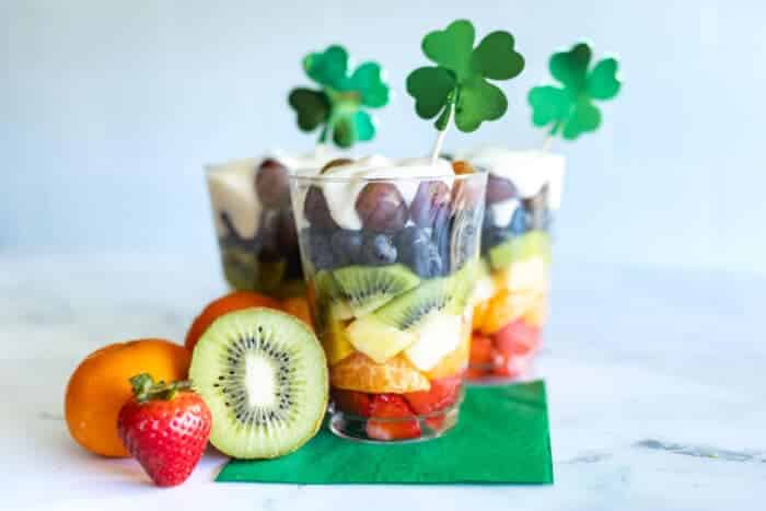 We love these Rainbow Fruit Parfaits all year long but they are especially fun for Saint Patrick’s Day, to help celebrate Spring, or for birthday parties for the kids. These would even make a great classroom snack or activity, too. Last year we made our Rainbow Fruit Tray so this year we started making these fruit parfaits in cups. Loaded up with all of the family’s favorite fruits. Just use the fruits your family enjoys in the colors of the rainbow. Red, orange, yellow, green, blue, and violet.