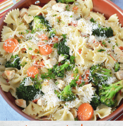 Thank you! This recipe answers the question “What do I do with chicken, pasta and veggies for dinner tonight?” With just a few changes I can make a healthy, delicious and easy dinner tonight!