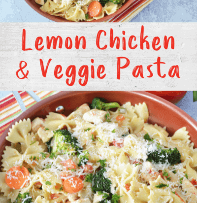 Sometimes I run out of ideas on what to make for our busy weeknight meals. Between school, homework, practice, and grocery shopping, coming up with quick meals is a must. This Lemon Chicken & Veggie Pasta is perfect for those kinds of nights. This pasta is healthy, easy to make, and loaded with flavor. This is great for Spring or Summer since it is a lighter pasta dish. Of course you can make it all year long if you are a pasta lover like me!