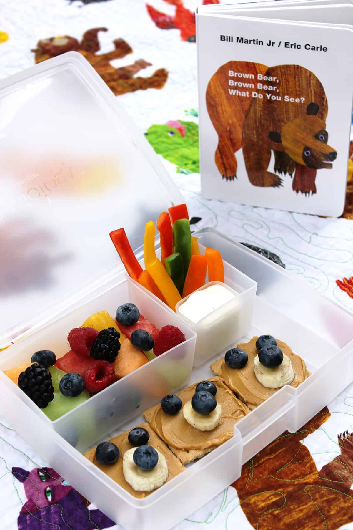 Brown Bear Bento Box with Rainbow Fruit Salad