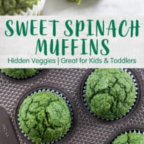 We love sneaking in veggies when we can, and since my kids loved these Mini Zucchini Bread Muffins, I couldn’t wait to make these Sweet Spinach Muffins.