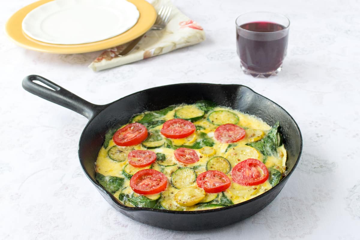 A frittata is an egg-based meal that is similar to an omelette or crustless quiche. You can add in additional ingredients such as fresh vegetables (like my zucchini and summer squash), meats and cheese.