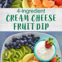 This easy cream cheese fruit dip is perfect for dipping fruit! It’s lightened up with Greek yogurt for a creamy and delicious snack or dessert.
