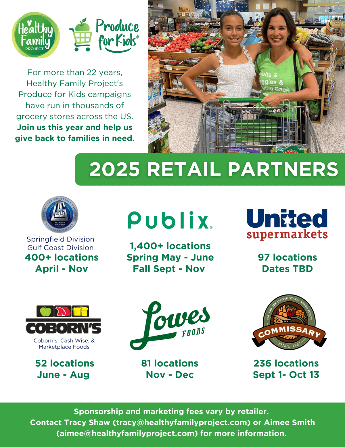 “We like to help our customers make healthy choices and Produce for Kids is a huge part of that. When we merchandise the amazing Healthy Family Project recipes in the produce department it helps drive sales and healthy eating habits.”